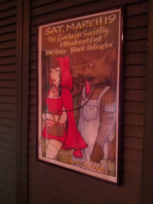 When my older daughter lived in Boston an artist who drew posters for bands and clubs gave her a selection and I got to choose one. I loved this take on Little Red Riding Hood.