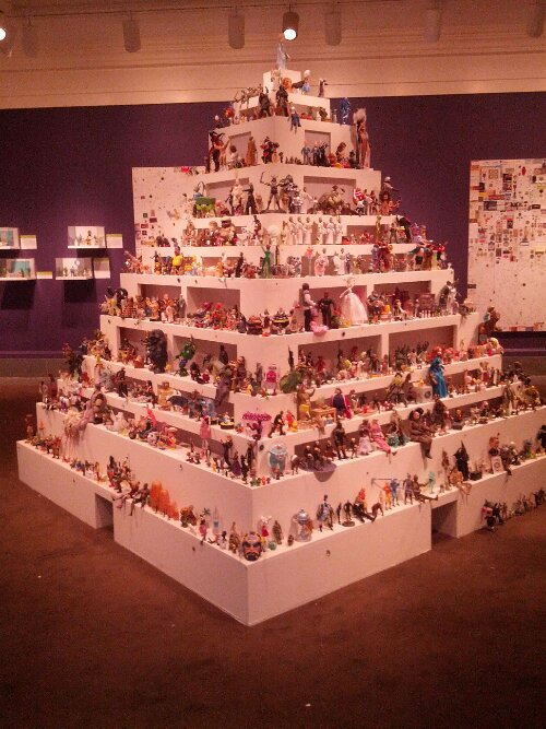 On Thursday I went to the Norman Rockwell museum to see the Disney Snow White exhibit and attend a lecture on Fairy Tales by Ruth Bottigheimer. Both were very interesting but also fascinating was the glimpse I got of Maya IV by Jarvis Rockwell. Since the exhibit hadn’t opened yet, I only got to peek at what the museum describes as “a vast toy-embellished pyramid inspired by Hindu temples adorned by sculptural deities”.