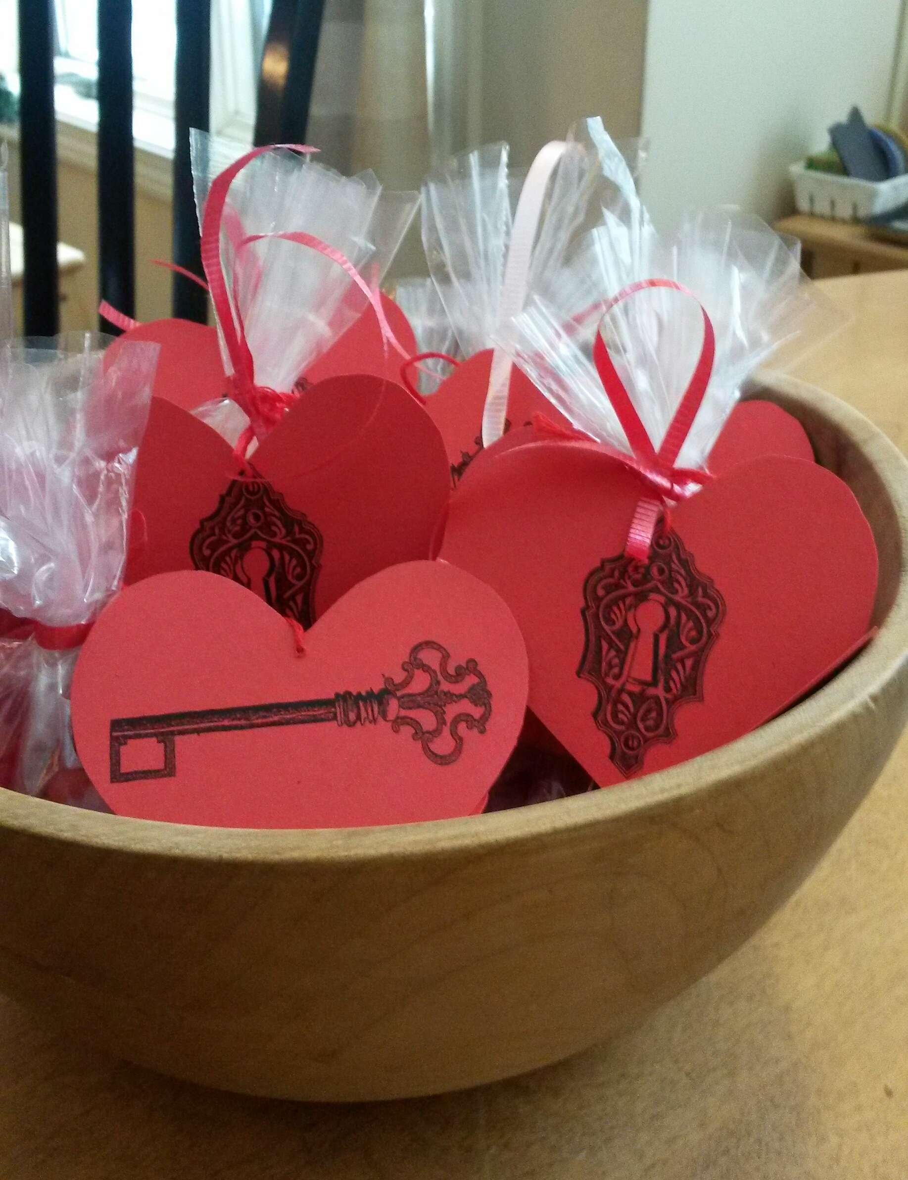 Last year I bought a valentine ornament – a heart with a gold keyhole on one side and a gold key on the other. I knew I had found the idea for my 2015 valentines. A Google search for old fashioned locks and keys yielded some great images. Then I just had to pick the candy, small red hearts seemed right. I didn’t expect them to be such a popular choice. “Are these those cinnamon candies? They’re my favorite!” exclaimed several recipients. And “Ooh, I’m going to make those cookies – you know sugar cookies and you stick these candies on them. ” was the reaction of two of my valentines.