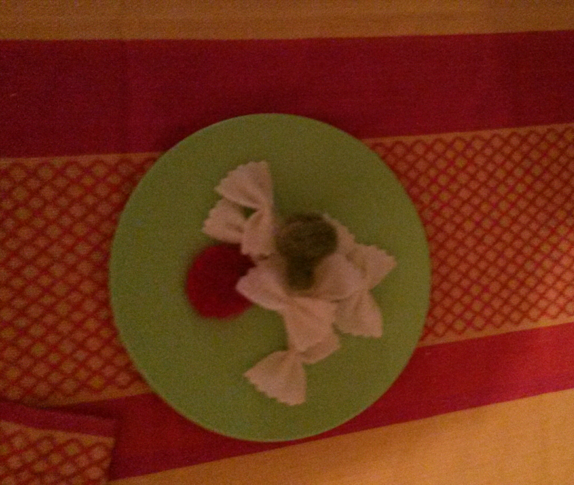 Broccoli and BowTies – one of our favorite actual dinners recreated in felt. The sun dried tomatoes and broccoli are needle felted. This is just the beginning…