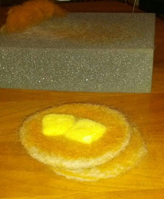 When my long distance granddaughter got a play kitchen for her birthday, I thought it would be fun to make her some felt food. I started my felt food crafting with needle felted fried eggs.