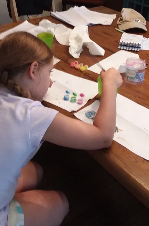 The next day was not a beach day so it was the perfect day for painting window ornaments.