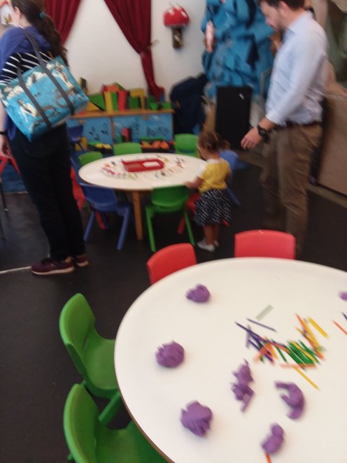 At the end of the lobby hall there is an interactive art piece and the door to the right of that leads to the stART studio for children 5 and under. It has “basic art materials including playdough and flubber” and a dramatic play, music, or theater area.