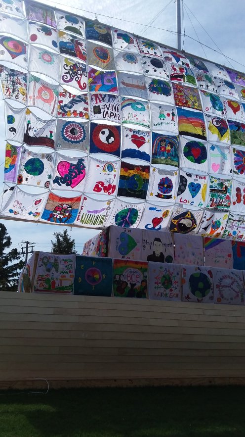 I wasn’t volunteering the day schoolchildren came to create drawings on silk for the Ship of Tolerance sails. The Ship of Tolerance is a multi site conceptual art project launched by the Ilya and Emilia Kabakov Foundation that has been installed in 16 cities around the globe since 2005. New sails are created at each site and before the drawing begins questions for discussion are posed like: “What problems do you expect to see in the future and what could you do to solve them?”