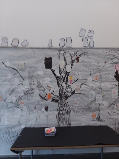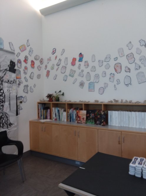 Things that had not changed were the link to children’s book art and the ways the materials were presented. These tables were set up for children to create collages inspired by the exhibit “The Art of Eric Carle.”