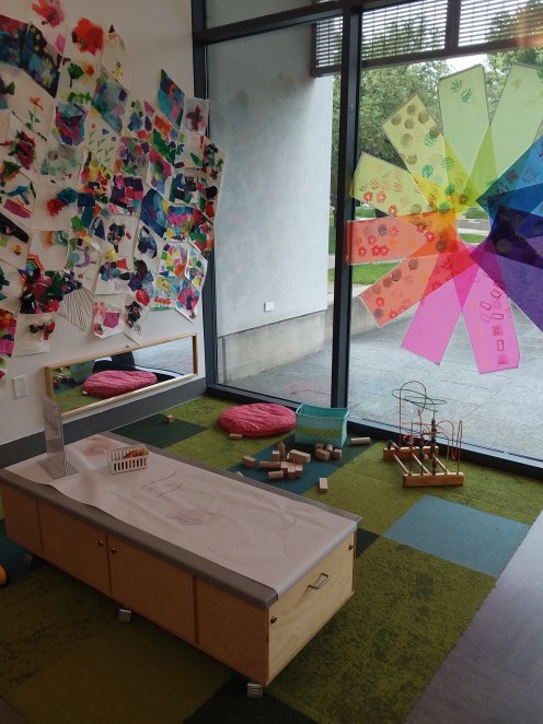 When I started volunteering at the Chicago Children’s Museum Art Studio my only previous museum art studio experience was visiting the art studio at The Eric Carle Museum of Picture Book Art. I’ve always loved the studio because it is so aesthetically appealing. But I know that when it first opened it did not seem child friendly to many parents. One of the things that rankled was that children were not allowed to draw on the paper that covered the table. When I mentioned that to Liz she said, “Well, our studio is an environment of yes!