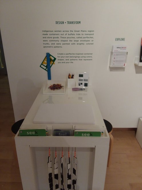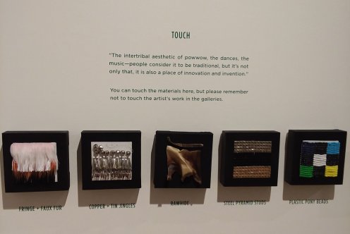 Jeffrey Gibson is of Choctow and Cherokee heritage and many of his pieces use beads and other traditional materials so they set up a touching station.