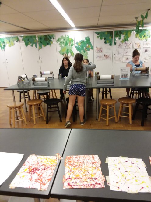 The Milwaukee Art Museum does have an art studio. The museum was having a James Nares exhibit and a lot of the pieces focused on movement so that was the inspiration for the art projects – marble paintings and drawing on a moving cylinder.