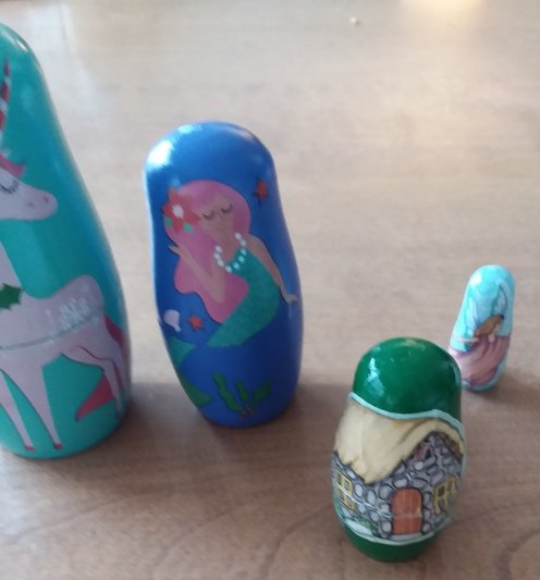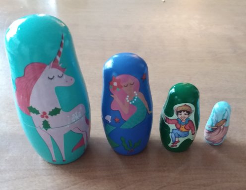 Last year I bought a unicorn matroyska doll set from stocking stuffer display at Michael’s. I had thought about giving it to my oldest granddaughter but never did so I decided to keep it. When I opened it I fully expected another unicorn but instead there was a mermaid!