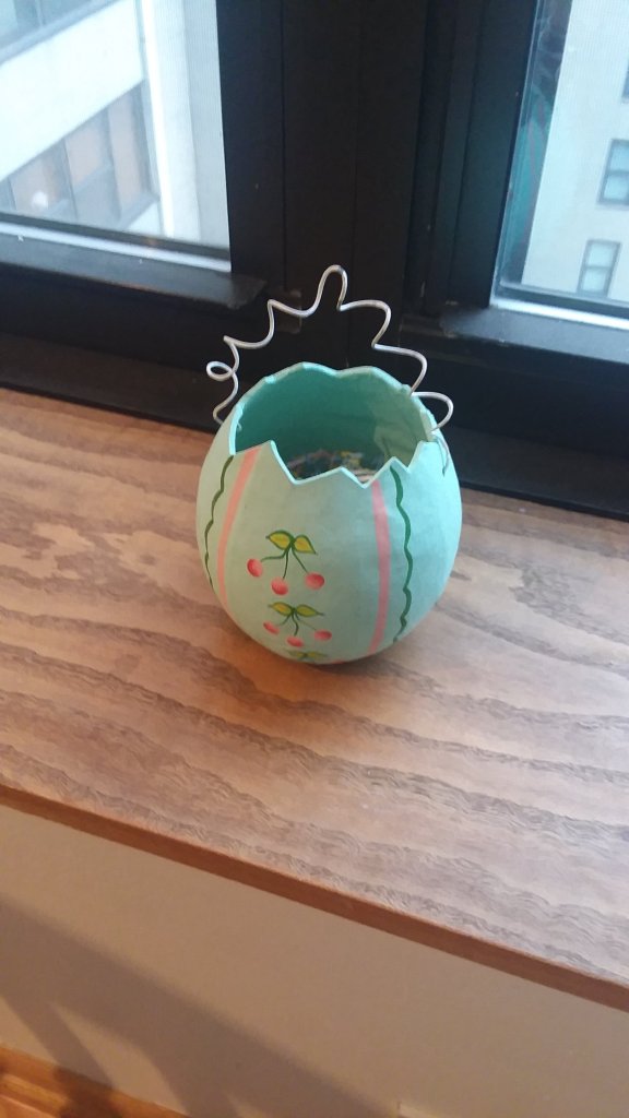 That cute (vintage?) egg basket with the painted cherry design also came from an Evanston sidewalk sale.