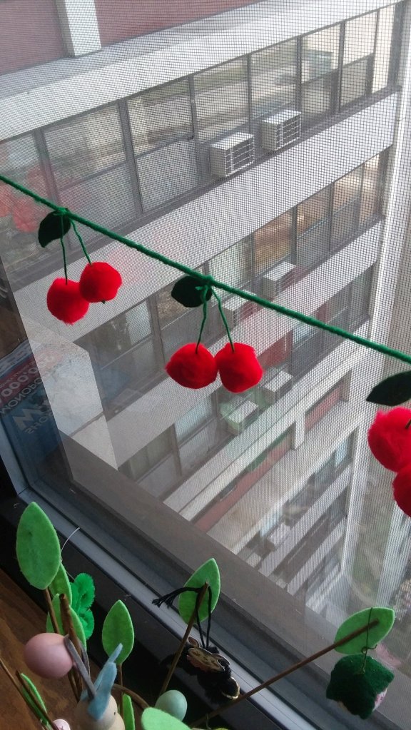 When I realized I was going to have lot of time on my hands I thought about whether there was anything I had been wanting to make but hadn’t gotten around to and remembered a pom pom cherry garland I had seen in a store. It became the first thing I crafted in the time of corona.
