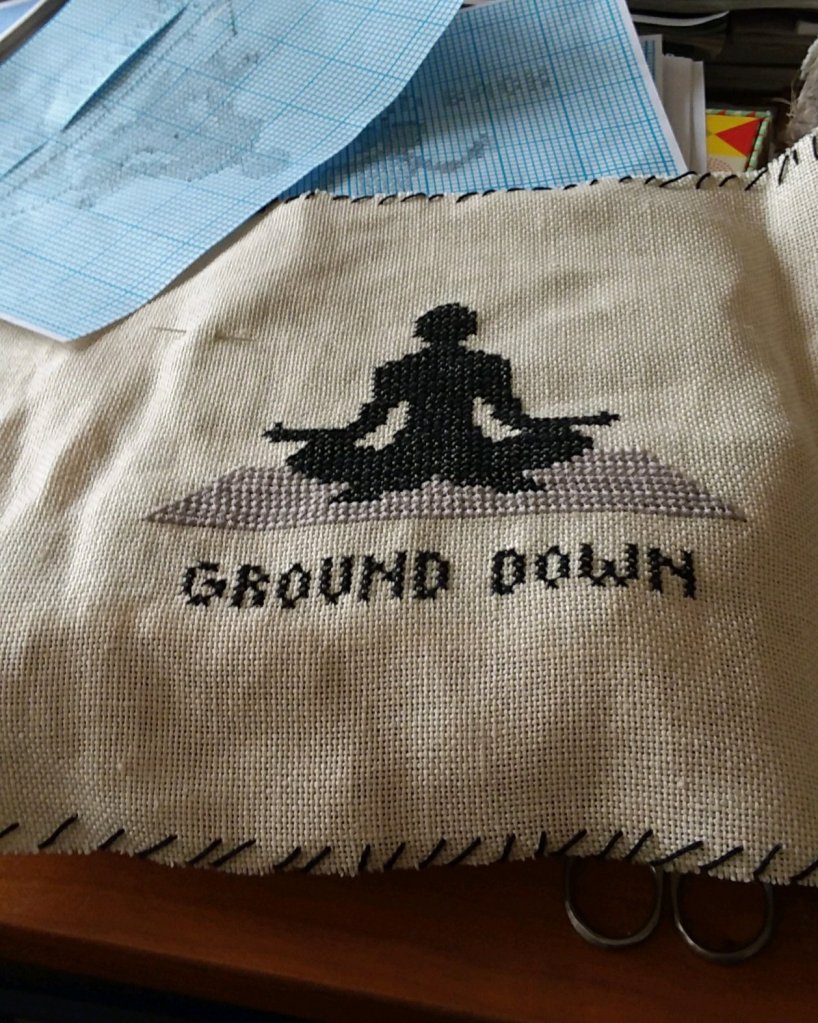 It came out so well I decided to make a yoga one too. I didn’t have a phrase in mind but after a few days of thinking about it came up with “Ground Down” the words Ken uses to indicate that he is finished sharing yoga philosophy with us and is ready to begin the practice.