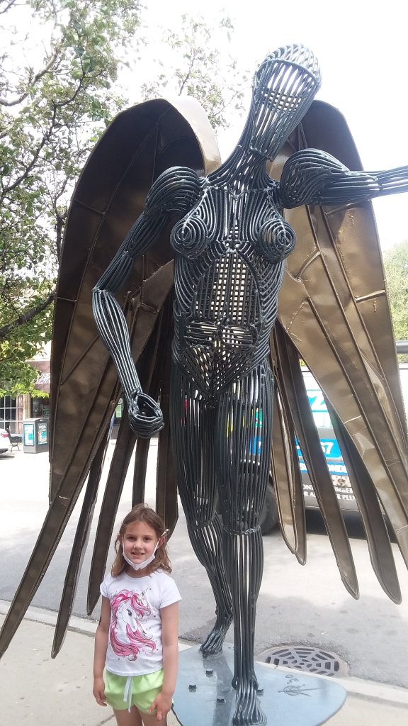 It may be because she’s used to posing for photos like this that my youngest granddaughter can’t pass a statue without posing in front of it and requesting a photo. The last time we walked to get an ice cream cone she posed in front of the Angel of Death on the way there and pulled her sister in for another photo on the way back.