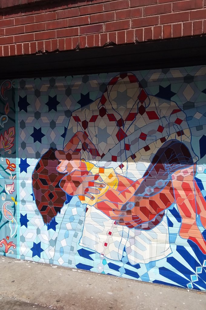 And I did return to look at the unfinished mural Uptown. Based on what I had seen I just expected a beautiful quilt pattern but it turned out to be a much more complicated piece.