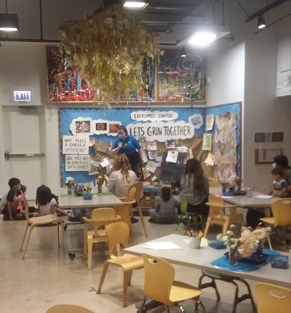 For the first few months that the museum was open visitors created a garden collage. In addition to an explanation of the techniques to be used the workshop introduction includes an essential question. For the garden project it was, “What makes a garden interesting?”