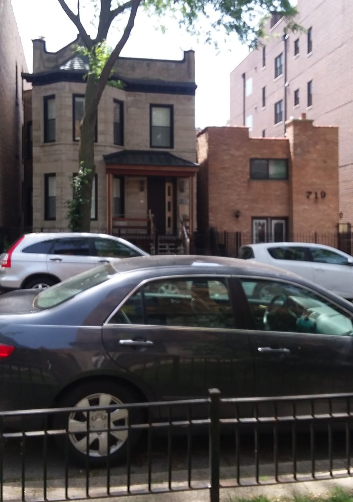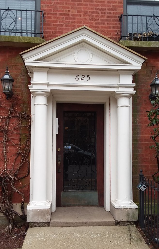 Well my neighborhood isn’t as exciting as Times Square but sometimes like Archie I’d rather look at buildings than growing things. One of the things I’ve found interesting lately is the contrast between buildings right next door to each other. For example 625 and 619 Stratford: