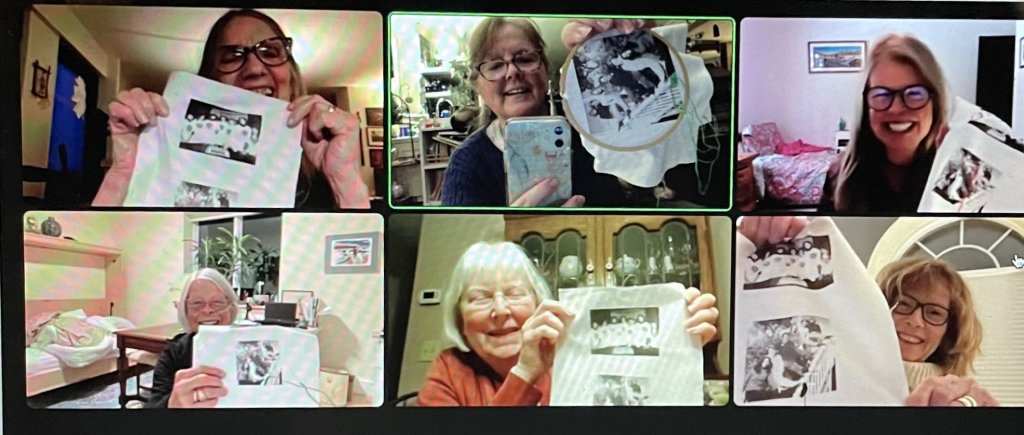 I was also inspired by another #larscraftalong participant, Robert Mahar who embroiders vintage photos. I made packets of two photos of the Baby Group Moms for a Zoom crafting session.