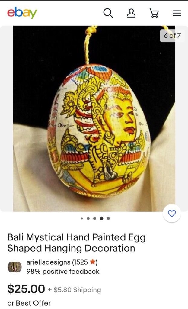 I thought this was even more similar, but I didn’t find out who she is yet. Although I think I can safely say my egg is from Bali, Indonesia. Now I’m wondering what other countries I can find eggs from!