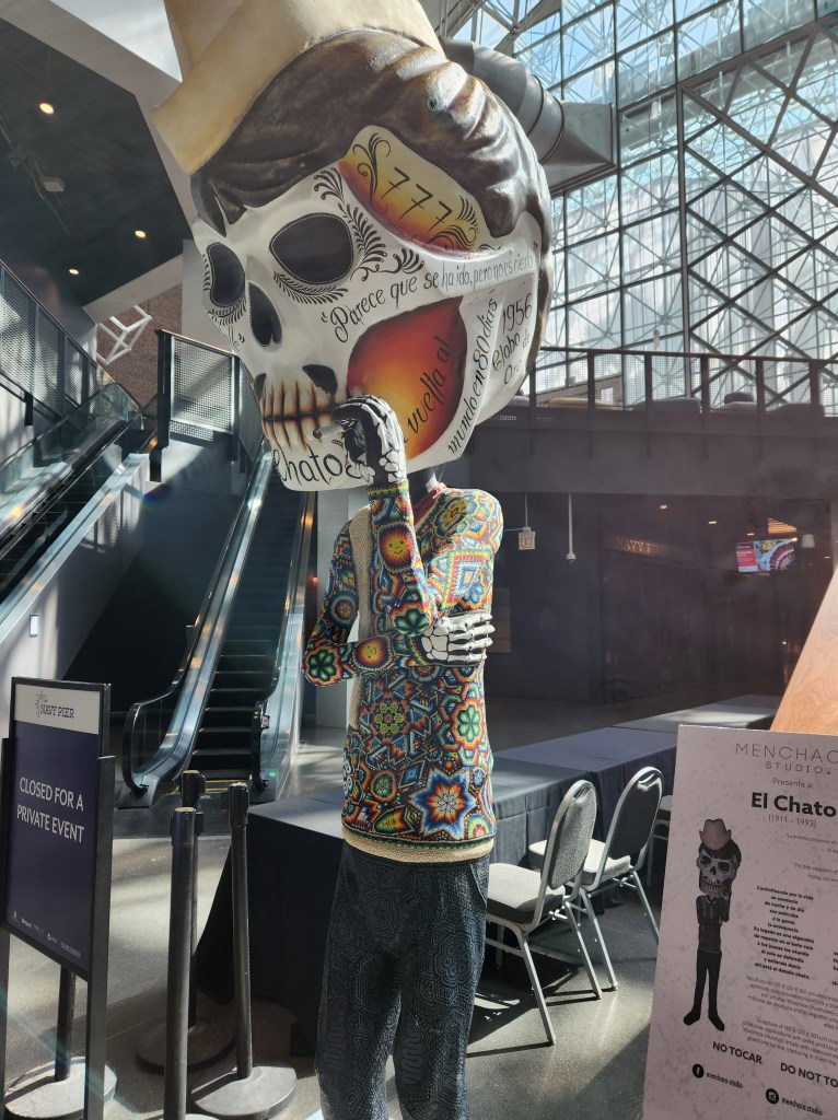 It seems that almost every time I go downtown, I find something surprising. Recently, when I arrived at Navy Pier to volunteer at the children’s museum, I found two large Day of the Dead figures.