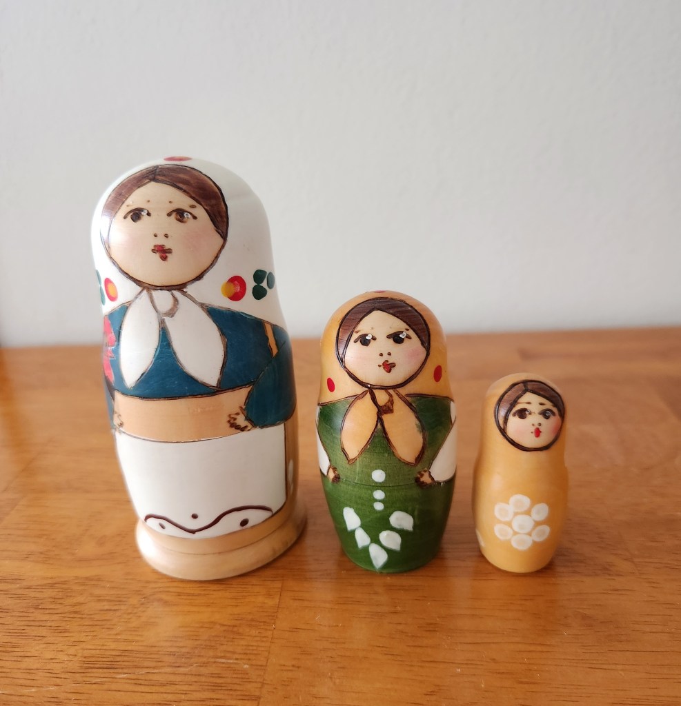 Our older daughter was a frequent visitor to a second-hand shop here in Chicago called Brown Elephant, so I was excited when one opened up in our neighborhood. When I stopped by the other day, I found a handpainted martryoshka set for only $3.00.