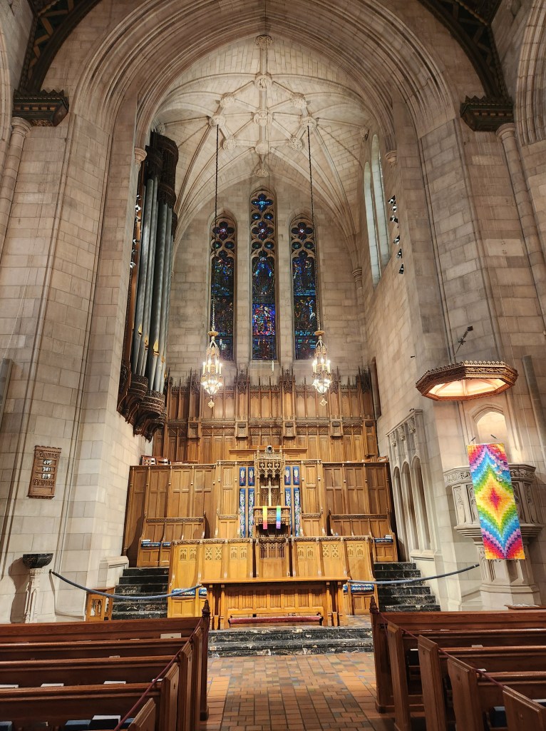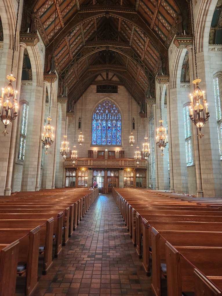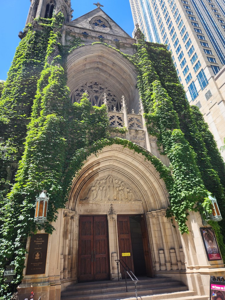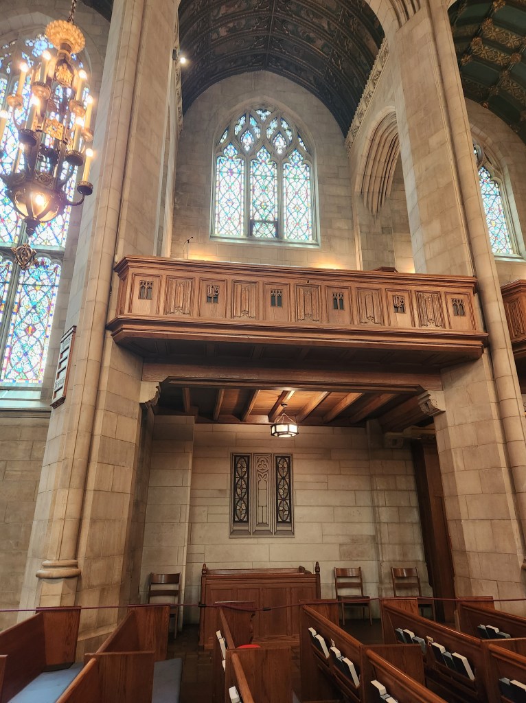 On the way to the exhibit, the next serendipitous event occurred. After our bus got to the first Michigan Avenue stop, it didn’t start going again, and after a few minutes, we had to get off the bus. We decided to walk rather than get on another bus, which gave us the opportunity to go into a church on Michigan I’ve been curious about since I’ve noticed from the bus that it is open to visitors. When we walked in, we were directed to a brochure titled “A Guide to the Architecture of Fourth Presbyterian Church,” and I can see why because it’s amazing!
