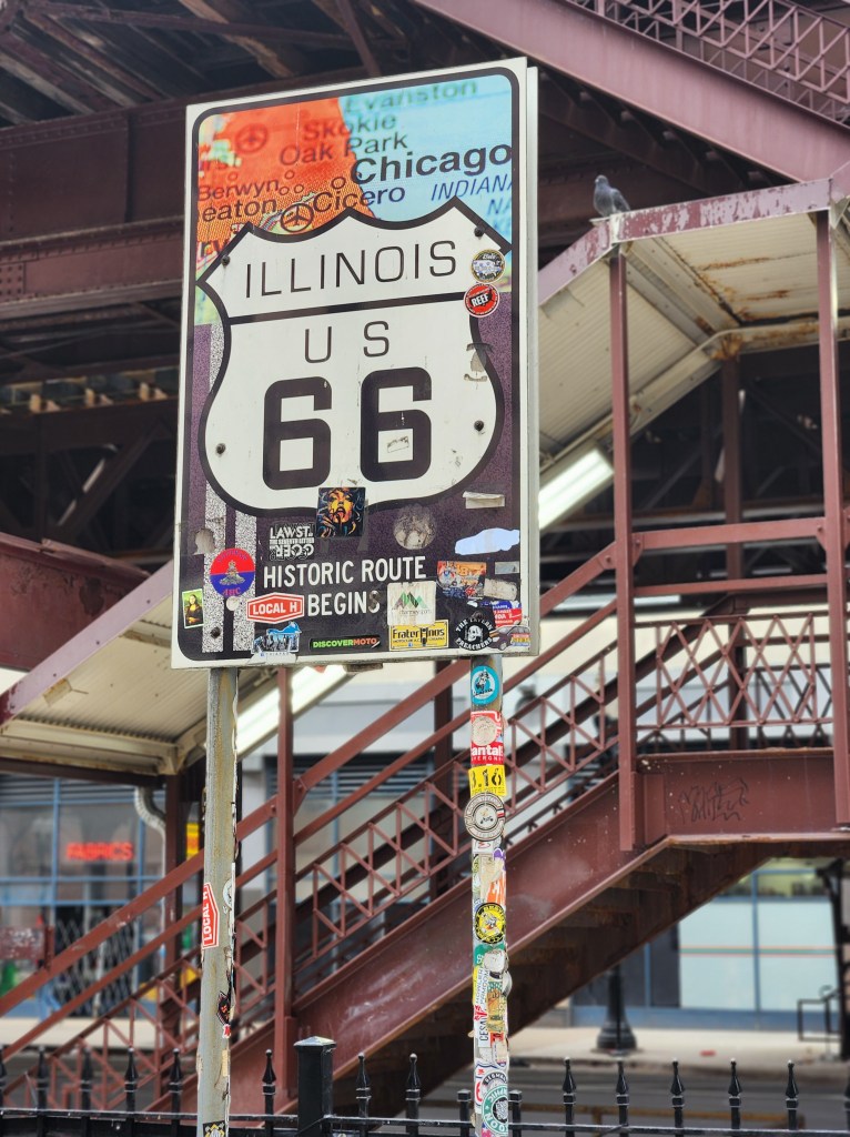 After awhile I asked my coworker in the art studio if she knew what the story with the motorcycles was. They must be part of the Route 66 sign unveiling she said. The what? While I was only vaguely aware of Route 66 when I moved to Chicago, I was excited but a bit confused when I saw my first Route 66 sign.