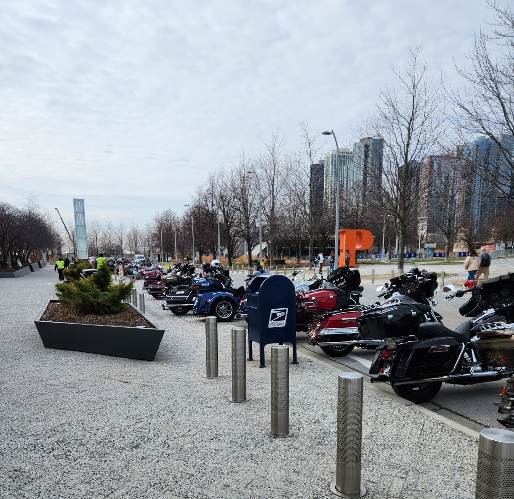 When I arrived at Navy Pier last week the entrance was lined with motorcycles. There was nothing to indicate why they were there but there are often different things going on at the Pier so I snapped a photo and I thought I’d ask the person at the information desk why they were there. But there was no one at the desk and there were no signs or flyers or any other way of knowing what was happening that day – a pet peeve of mine that could be the subject of a whole other post.