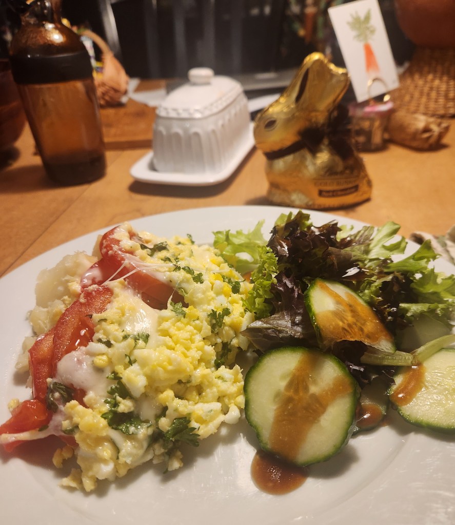 Since we weren’t having a brunch we had our traditional Easter casserole for dinner. I made it with fresh tomatoes for the first time and it was delicious!